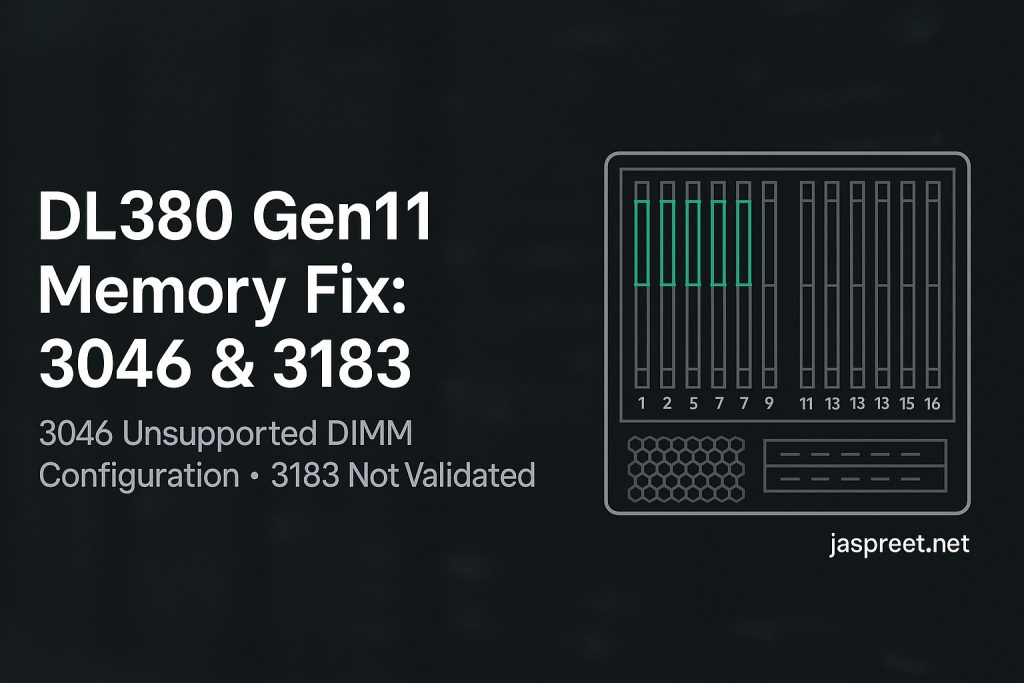 If you’ve just added RAM to a DL380 Gen11 and the server throws 3046 – Unsupported DIMM Configuration or 3183 – DIMM population not validated, don’t panic. In almost every case, nothing is “wrong” with the memory itself—the DIMMs are simply in the wrong slots for this generation’s layout rules.